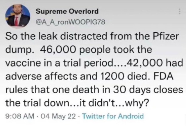 Just goes to show you that the democrats can’t run a one car funeral without screwing it up. Everything about Covid was a lie except that it was man made and escaped from Wuhan