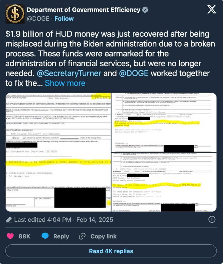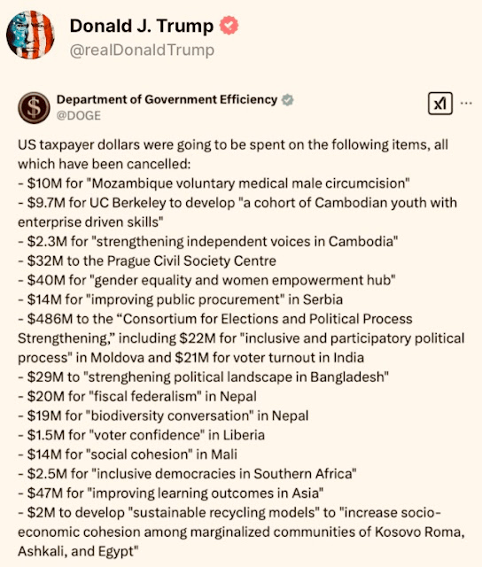 It’s also being speculated that DOGE is going after USAID spending both because it was low-hanging fruit of corruption and because it’s relative small size.