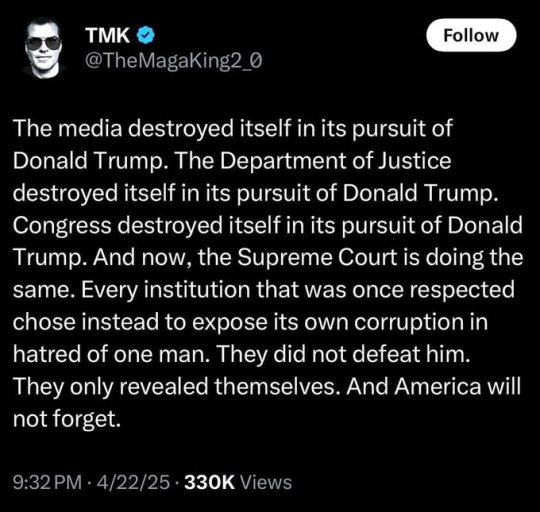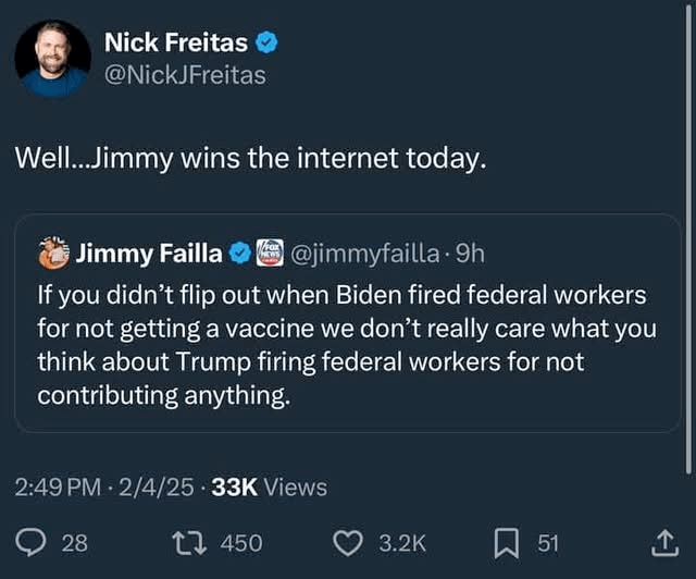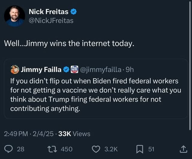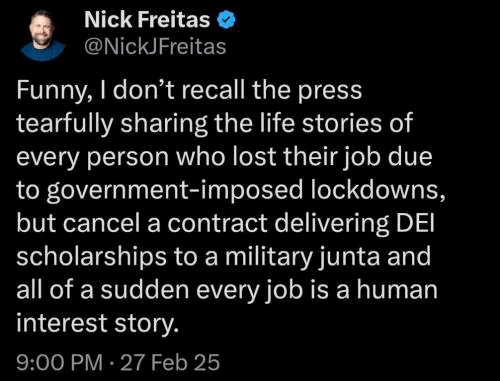 Another text “Based on the reactions from within the party it seems to me that dismantling USAID is Trump’s biggest political victory to date, it was his enemy’s golden goose”