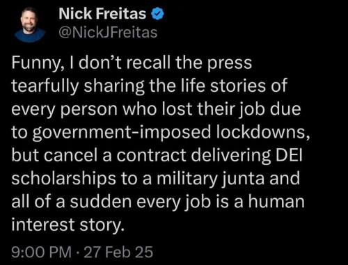 Talked to a friend who has connections within the Democratic Party and he said the level of panic over Trump and Elon shutting down USAID is unlike anything he’s ever seen.