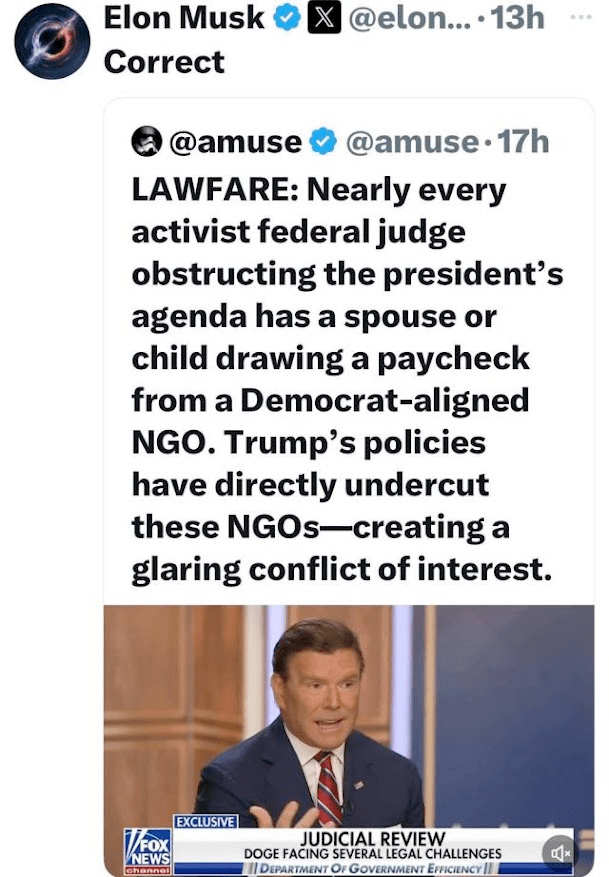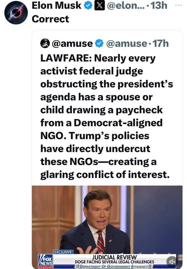 Another important addition. He said initial plans by the Democrats is to have their people at USAID hide the partisan funding under “unimpeachable initiatives”. “They will push back really hard on certain line items that on their face look like reasonable USAID expenditures and hide their political spending under these programs”