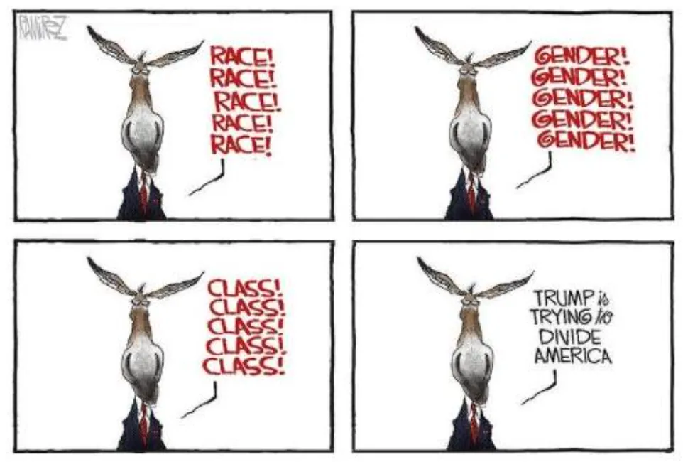 4) In a multiracial democracy, redefine identity only as one’s tribal affiliation. Ensure each identity group rivals the other for victimhood and the state spoils it confers. Redefine all political issues by race and sex oppressors and oppressed. Destroy all meritocratic standards of admission, retention, promotion, and commendation.
