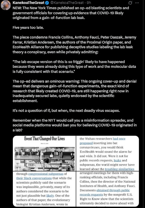 For years, we were told that the lab leak theory was just “disinformation”. Of course now it has come out that certain individuals in very prominent positions waged a relentless campaign to discredit it. They were desperate to keep a lid on what really happened, but now the truth has come out. In fact, at this point even the CIA is publicly admitting that it is more likely than not that the lab leak theory is accurate…