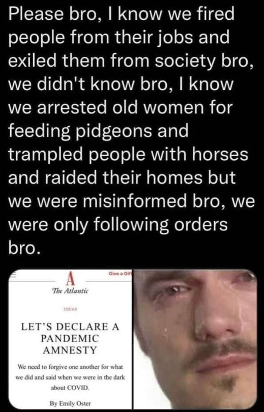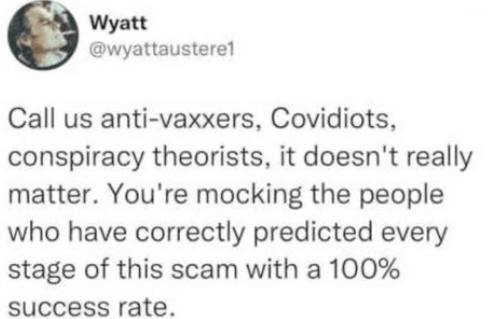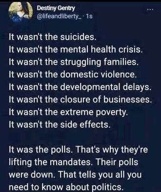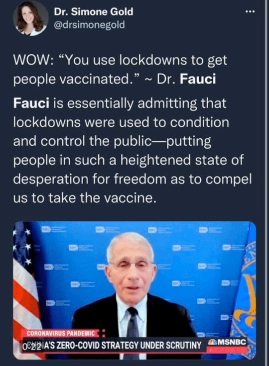 In other words, it wasn’t about curing people or protecting them from Covid. It was a power and money grab.