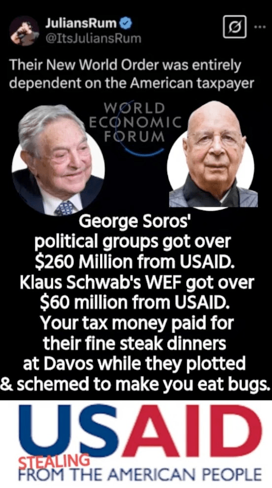 Direct quote: “This is worse than 9/11 for Democrats. USAID is the primary vessel they use to achieve their political agenda. USAID is and always has been the primary source of funding for their influence peddling schemes and for their indirect sources of income”
