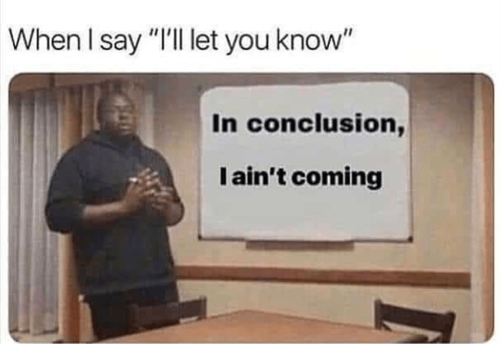 The bane of Introverts is small talk and inevitably, during small talk comes promises or boasting of things one will absolutely do. I’m more surprised when they actually do what is promised than by the cheap words now.
